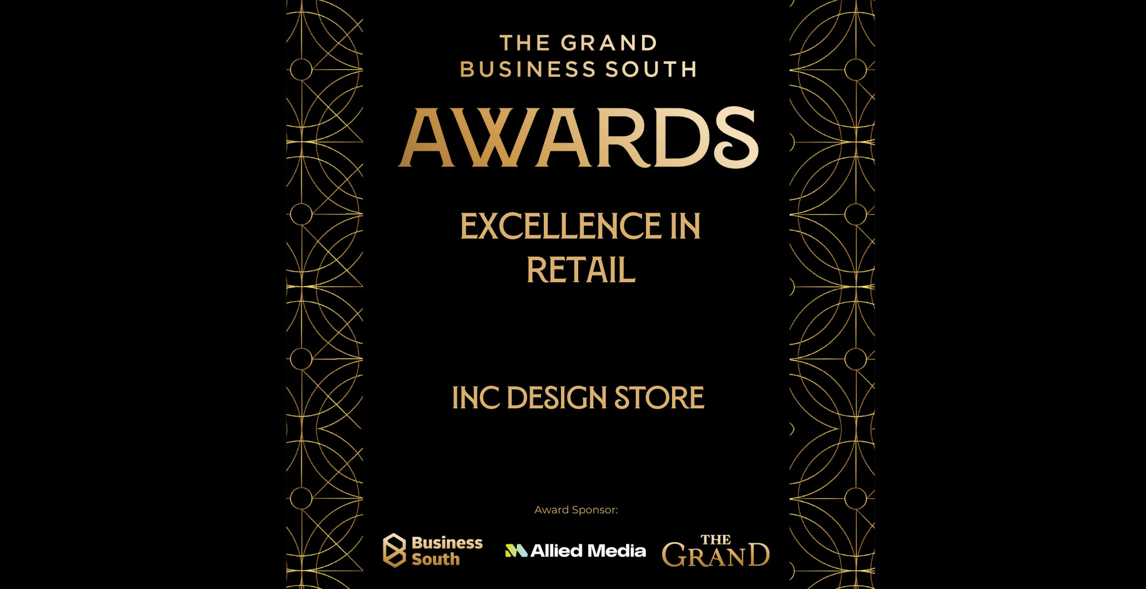 We are thrilled to announce that inc design store has been selected as a Finalist for the Excellence in Retail , Grand Business South Awards 2025. This is a momentous accolade for us, and we are so thankful to our creative suppliers, team of staff and all of you in our greater community who support our store!