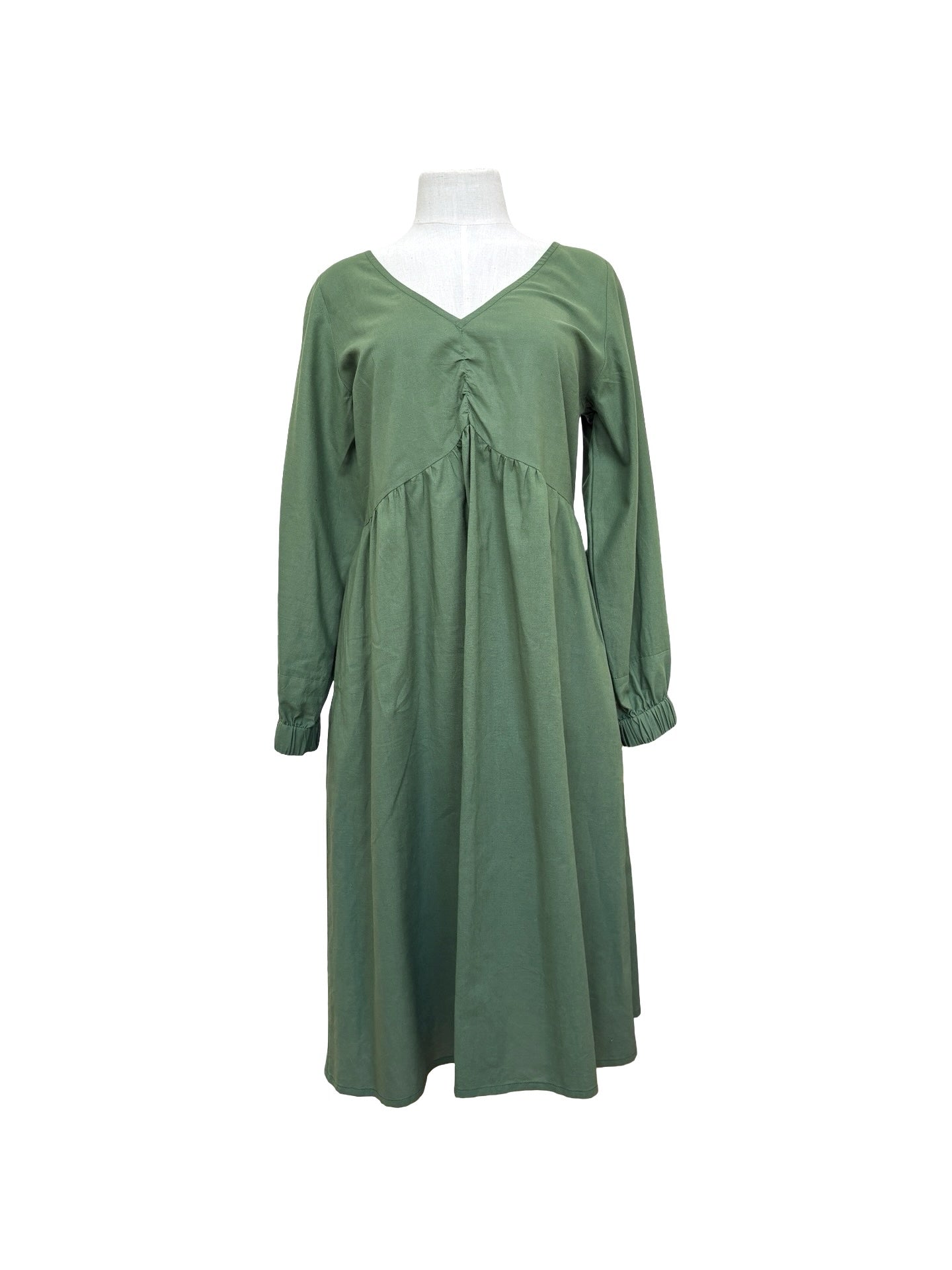 The Abby dress offers full length sleeves, with a shaped waistline and features a V-neckline with subtle rouching down the centre front of the bodice.