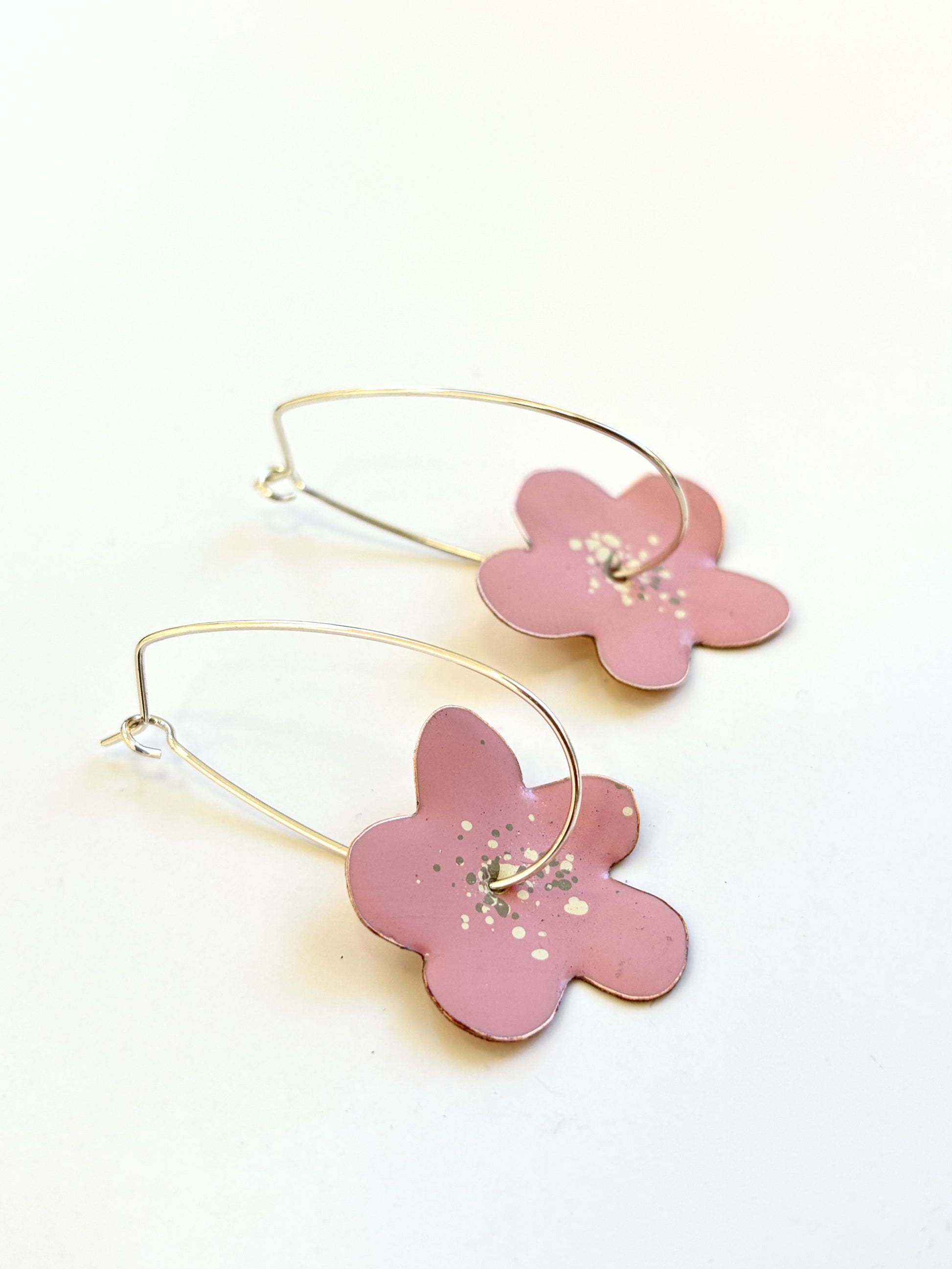 Hand cut copper has been shaped irregularly and carefully enamelled then hung from a sterling silver hook measuring approx 4.5cm-5cm in length.