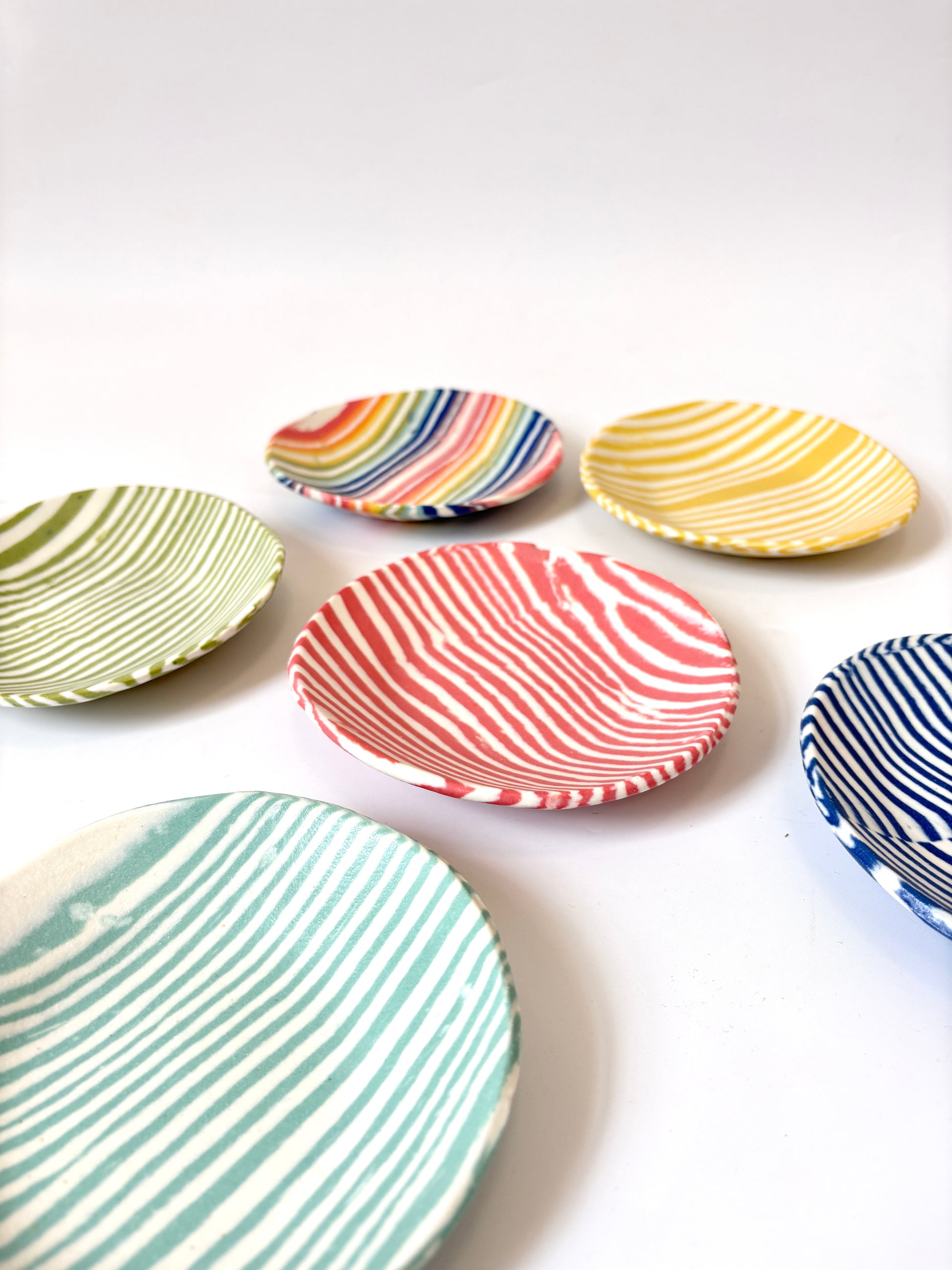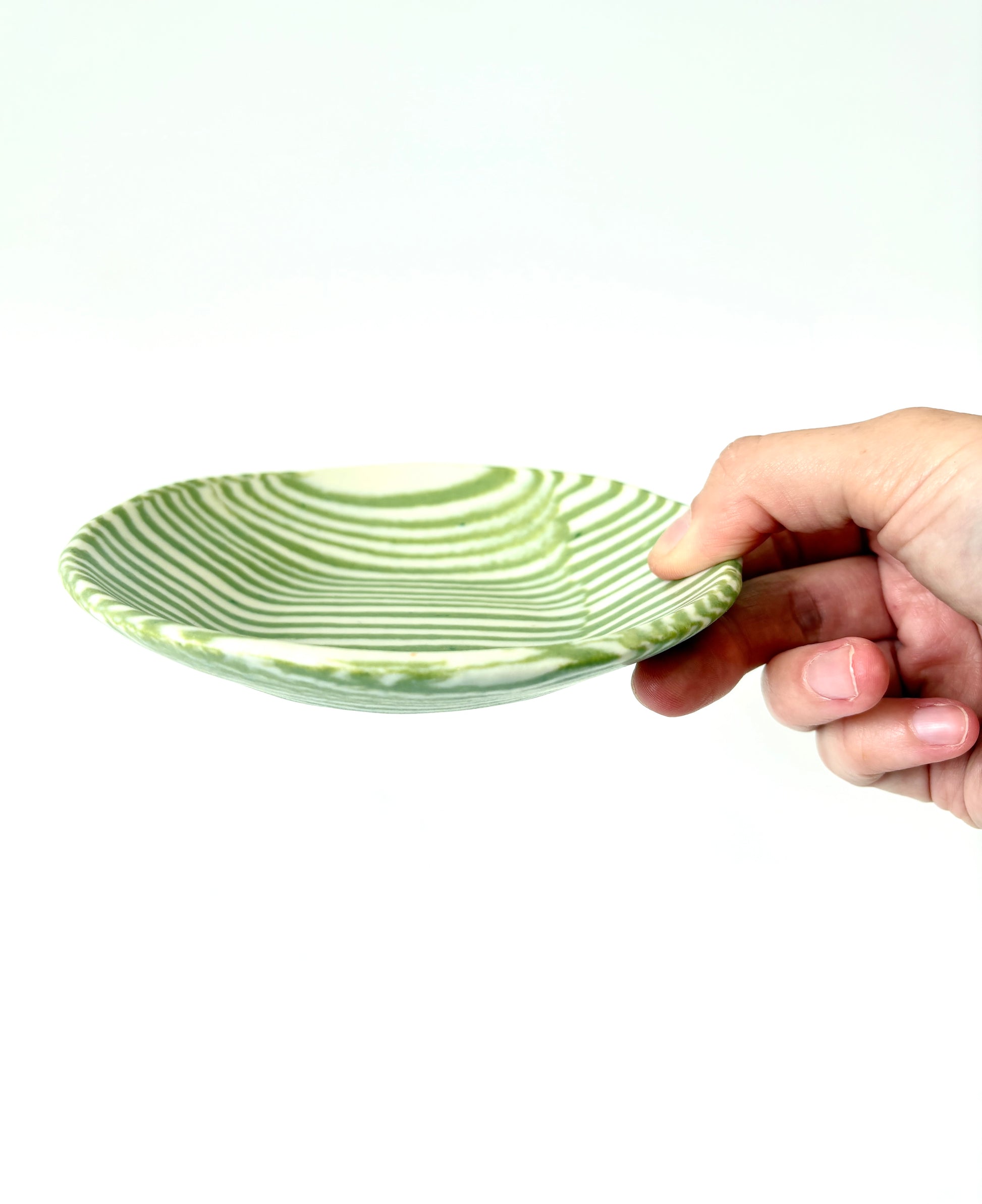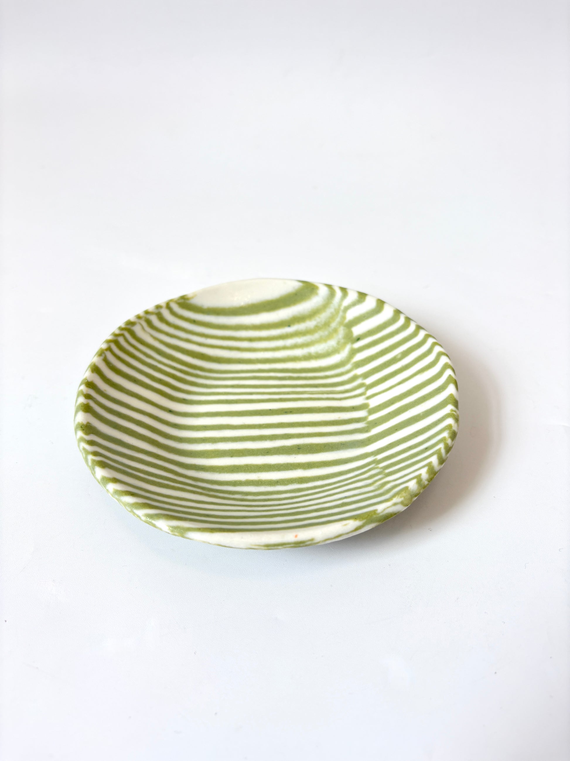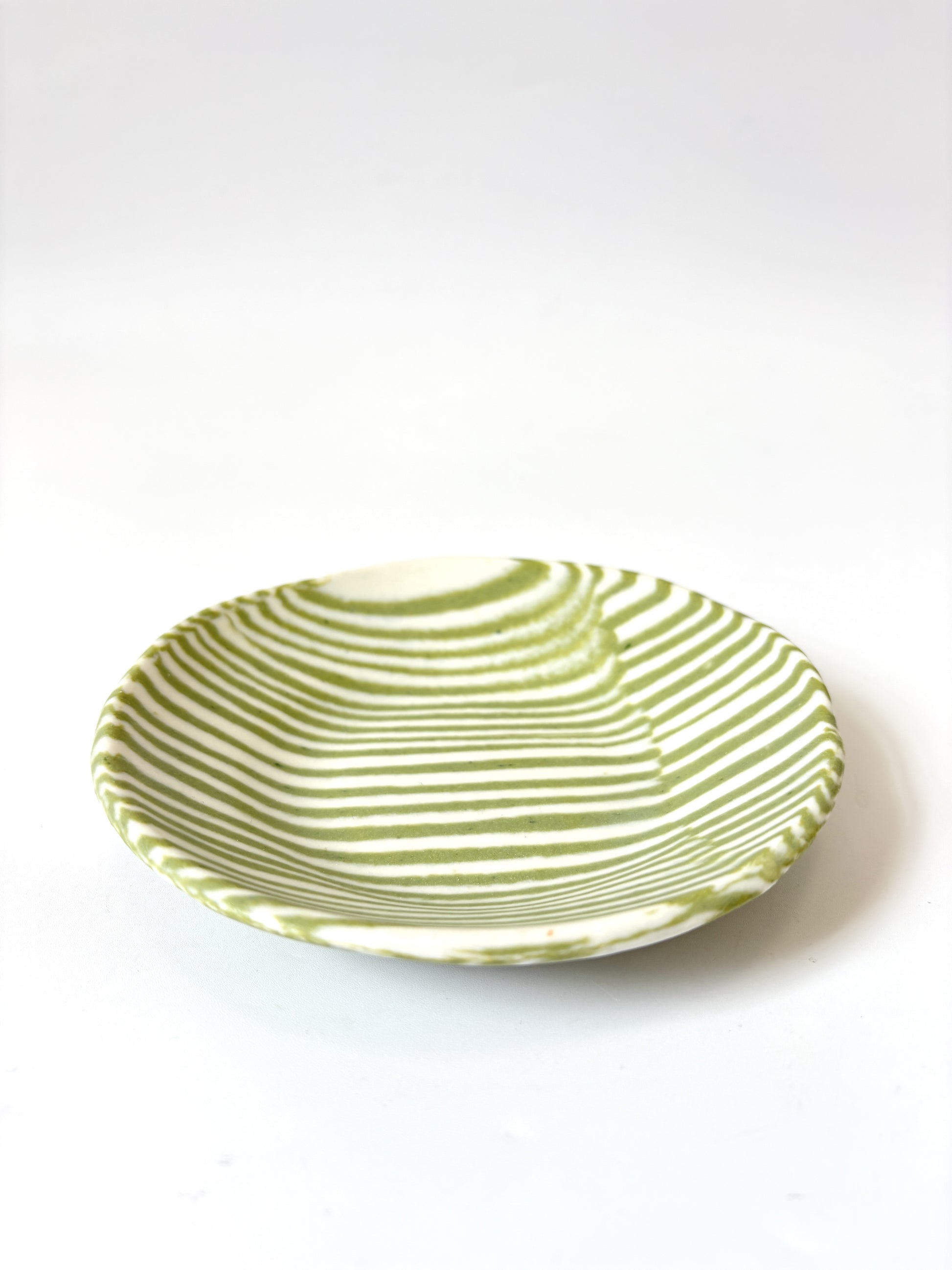 Ceramic Nerikomi Flat Dish - Light Green Stripe