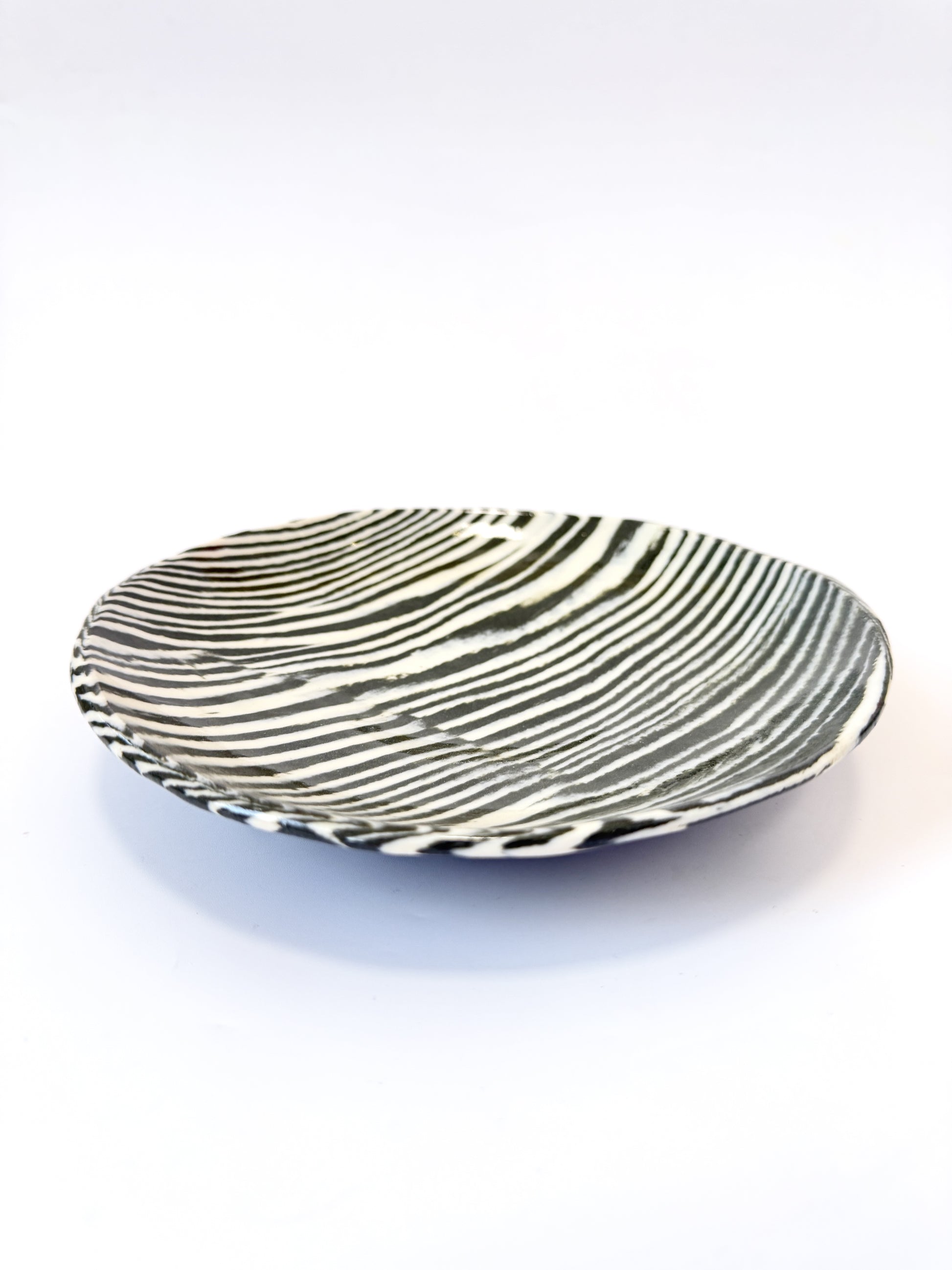 Ceramic Nerikomi Statement Dish - Dark Green Stripe