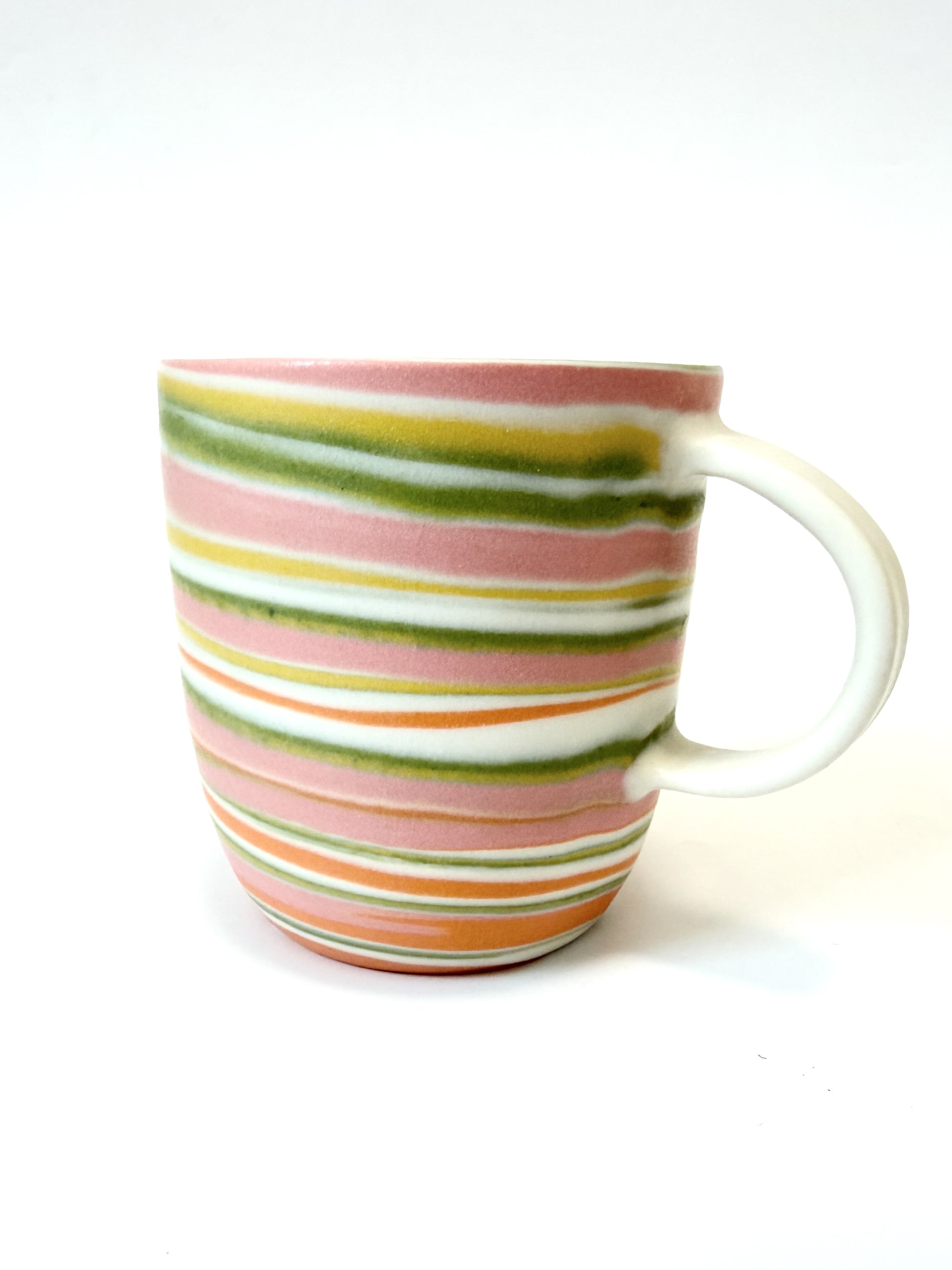 Ceramic Thrown Mug - Tall - Green & Pink Rainbow