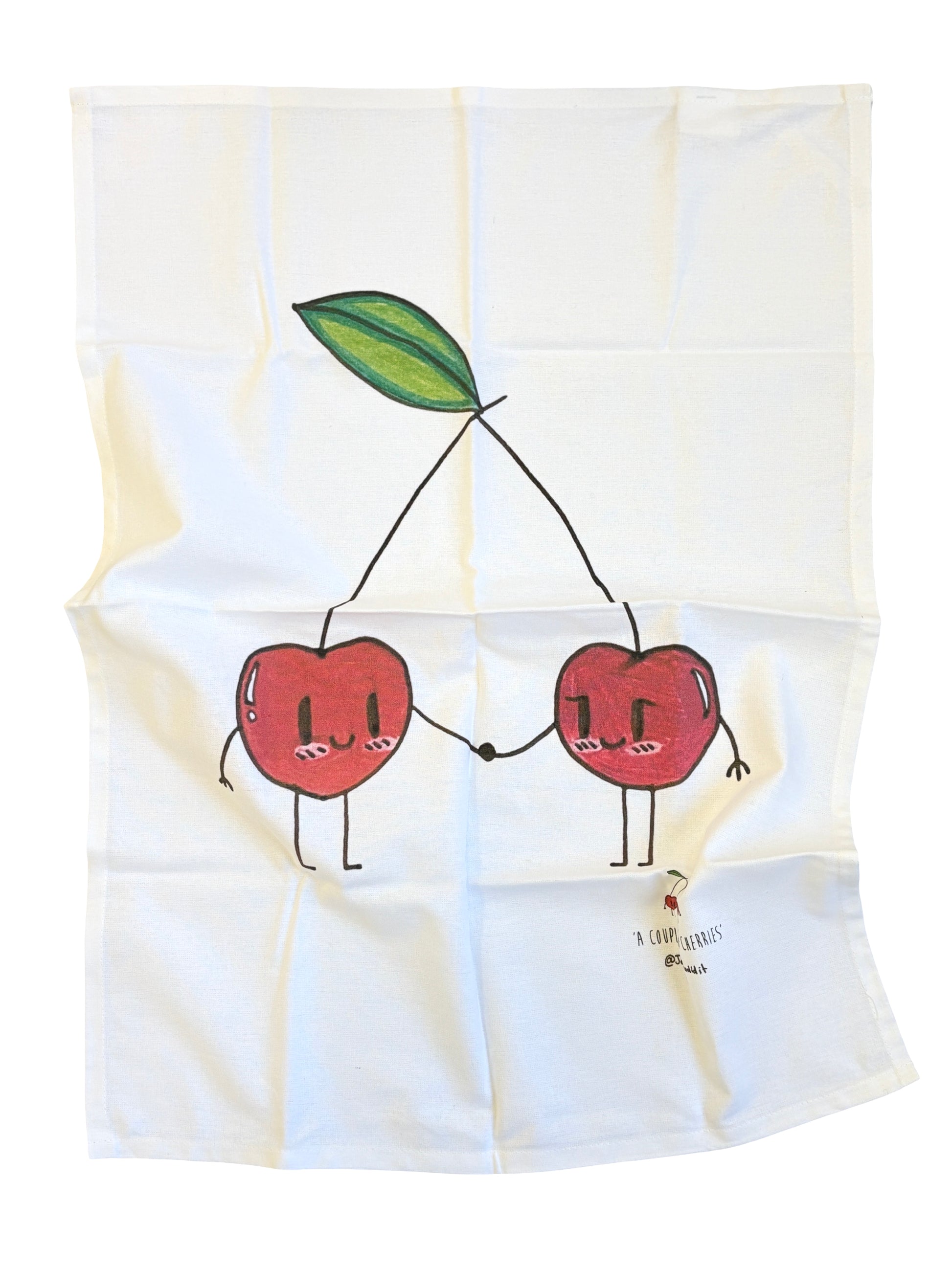 Couple of Cheeries - Illustrated Cotton Tea Towel by Jemimadidit