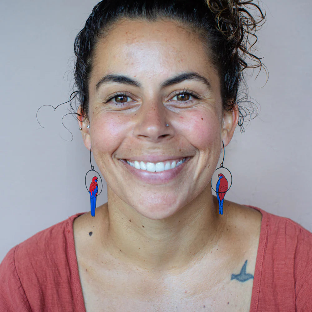 Celebrate the beauty of Australia’s birdlife with the Crimson Rosella Earrings from DENZ, a mismatched pair featuring hand-drawn designs of both the male and female rosella. Perched inside a hoop, each earring showcases the unique colour markings of each bird. Crafted from super thin recycled stainless steel, these earrings are ultra-lightweight and designed for comfortable, all-day wear.