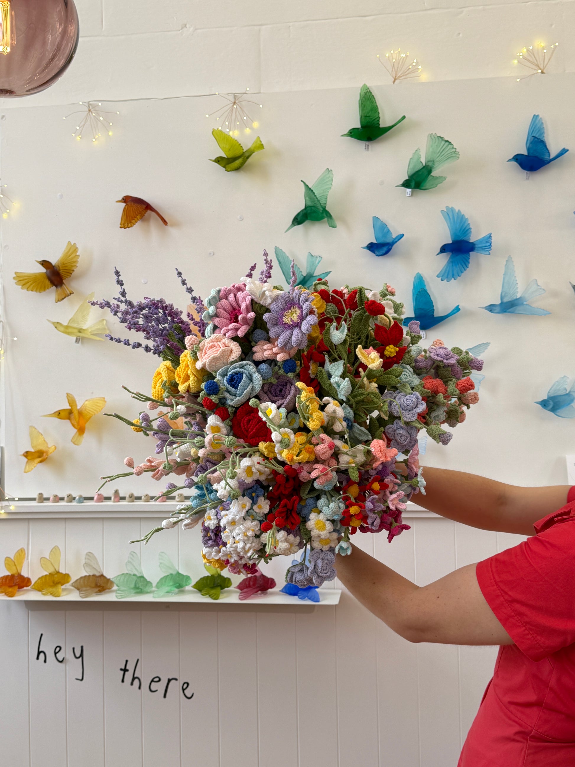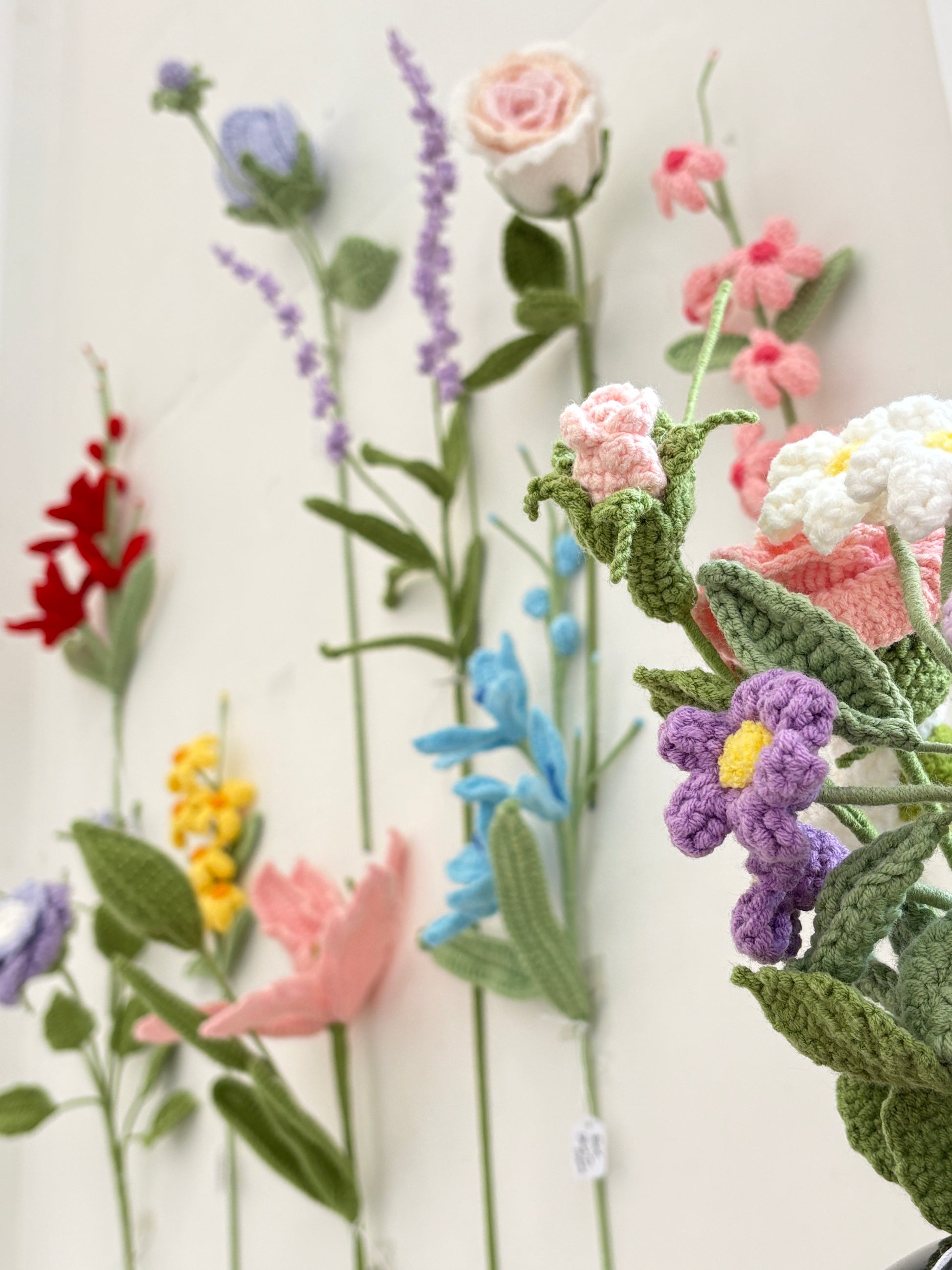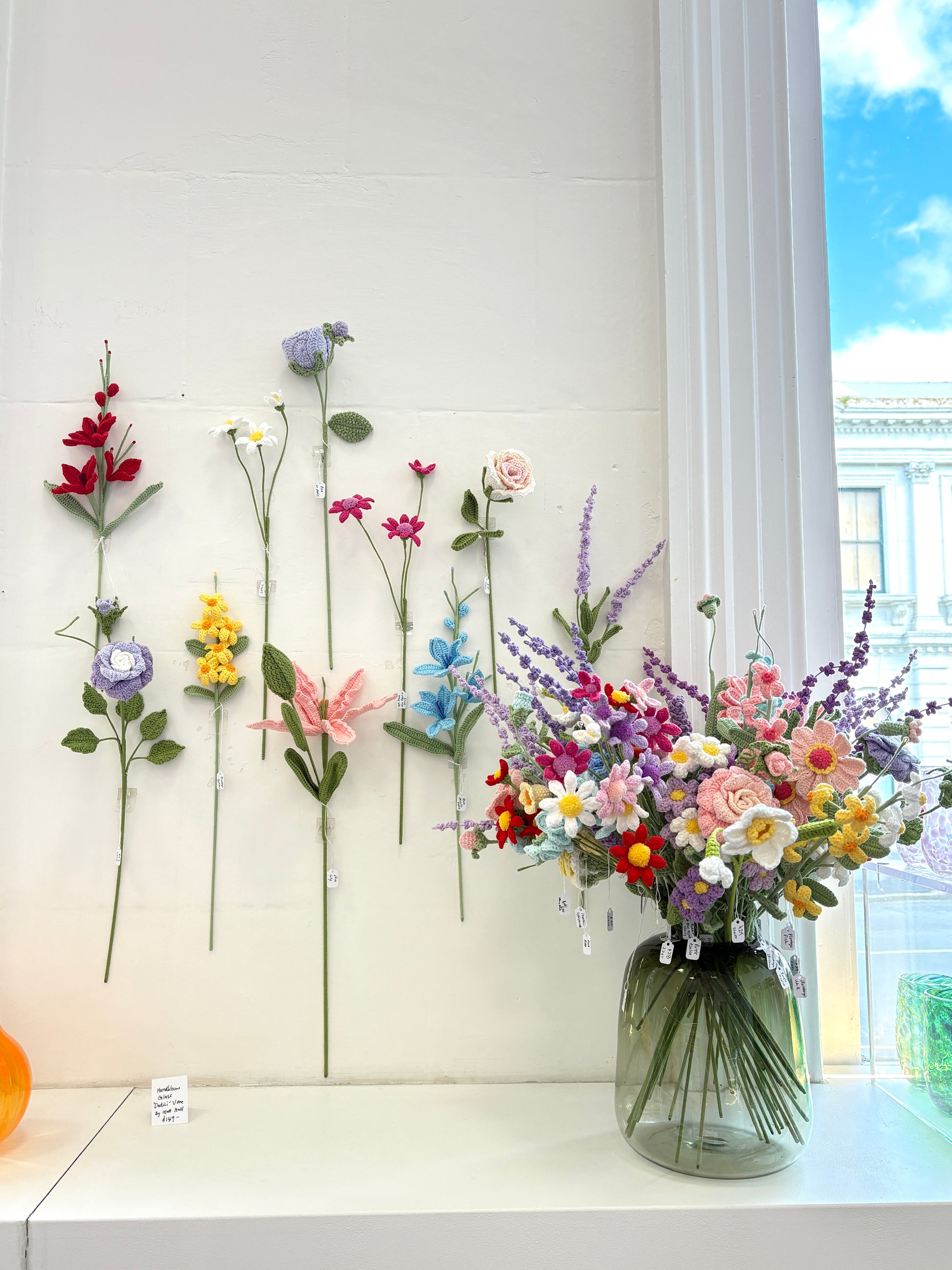 Beautiful, realistic crochet flowers, handmade in NZ for inc store. These are incredibly detailed and realistic forms ; choose from the range of flowers and colours, or collect them all for an amazing art installation.