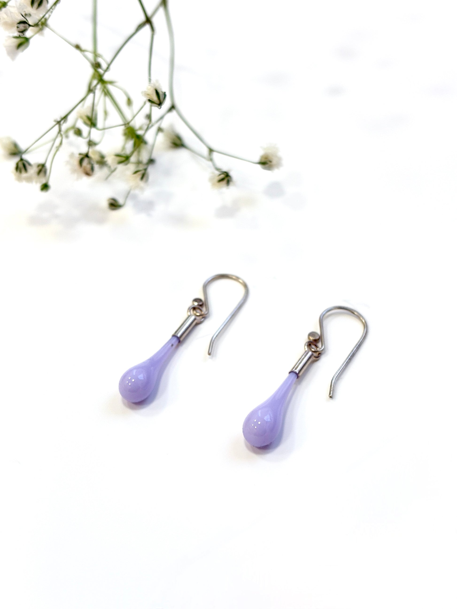 Glass Teardrop Earrings - Soft Lilac, Opaque