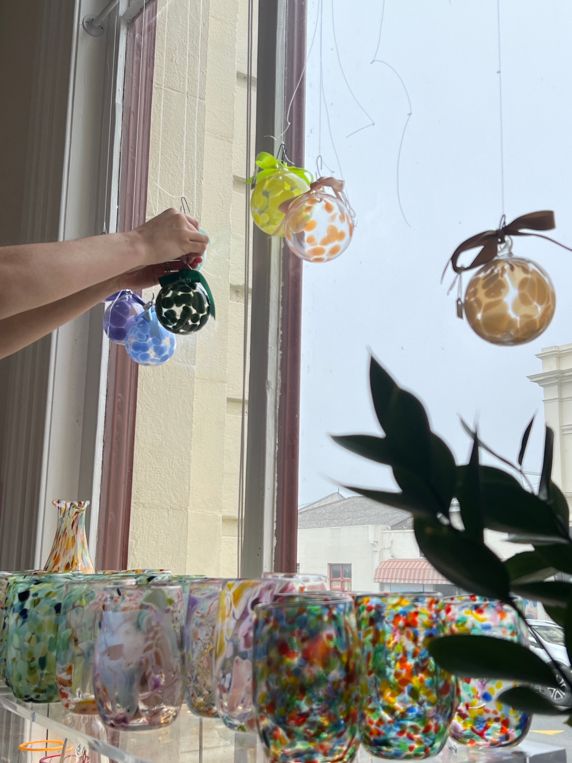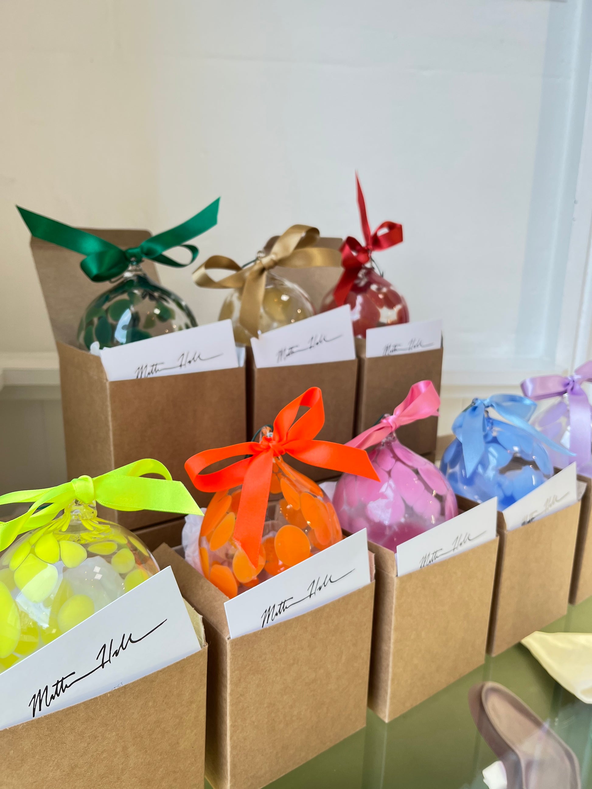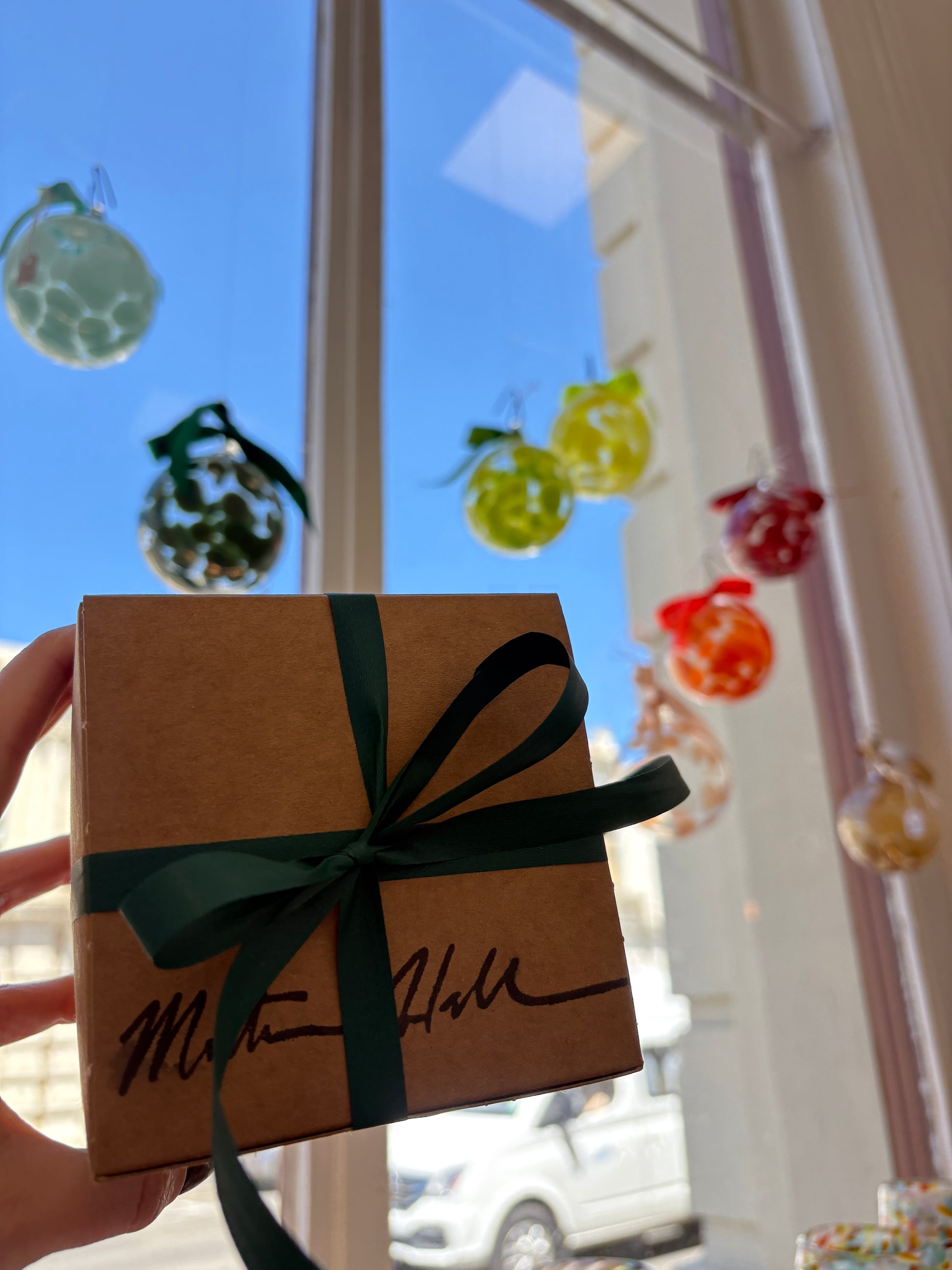Contemporary handblown glass bauble by Matthew Hall Glass.