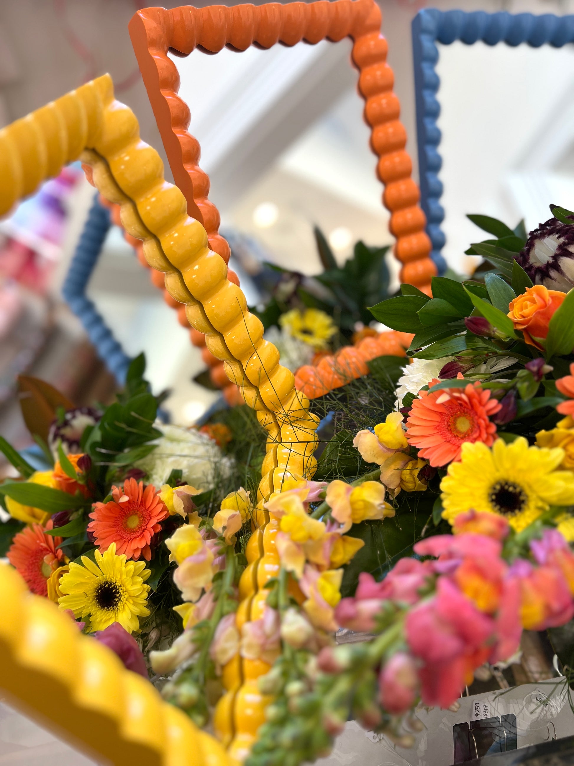 These mirrors are made with wood from a collection of windfallen macrocarpa from a family farm. Each frame is turned freehand on a wood lathe by Nick, then cut and hand finished to produce a unique item.