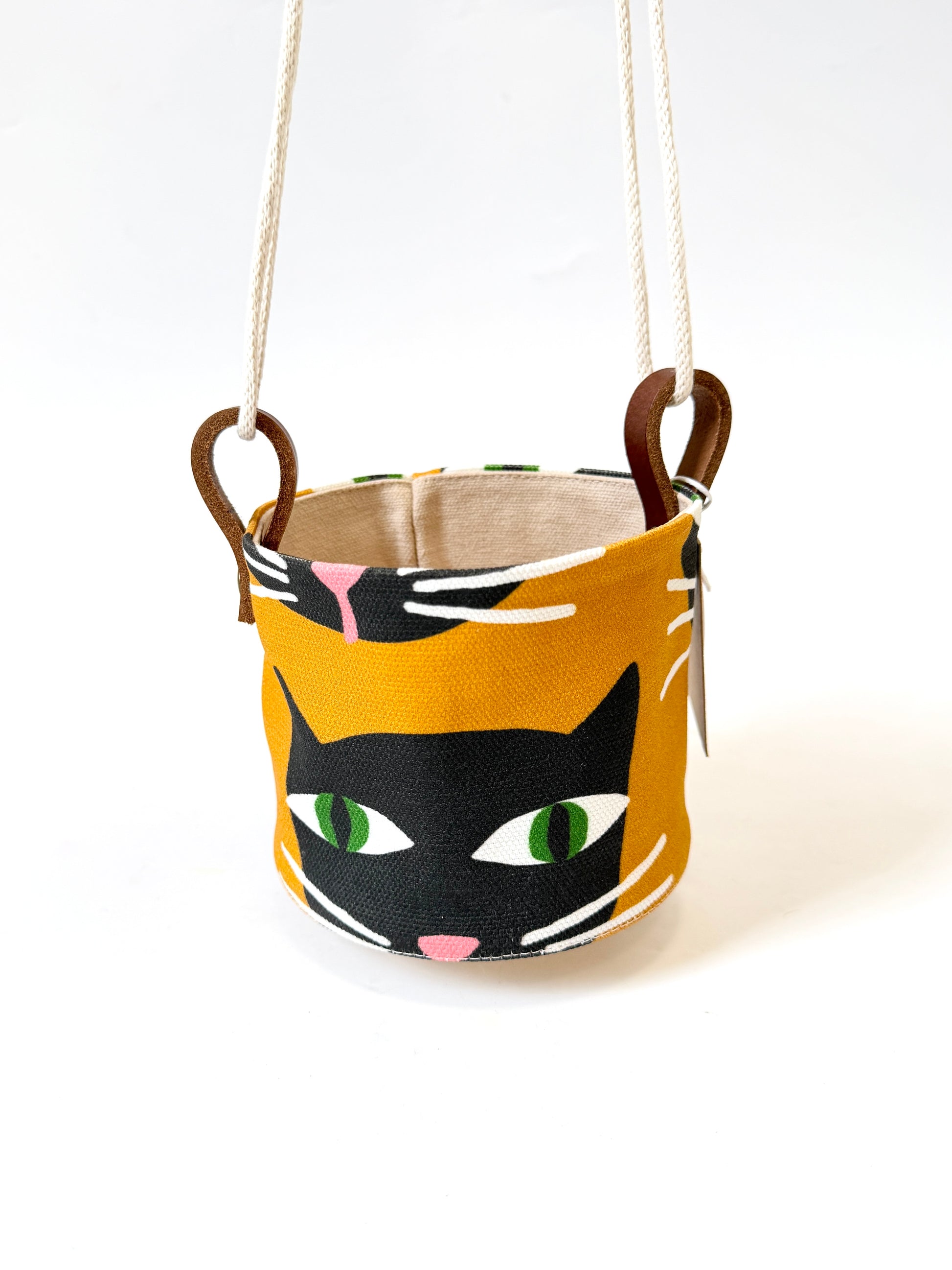 Hanging Canvas Planter - Mustard with Black Cats