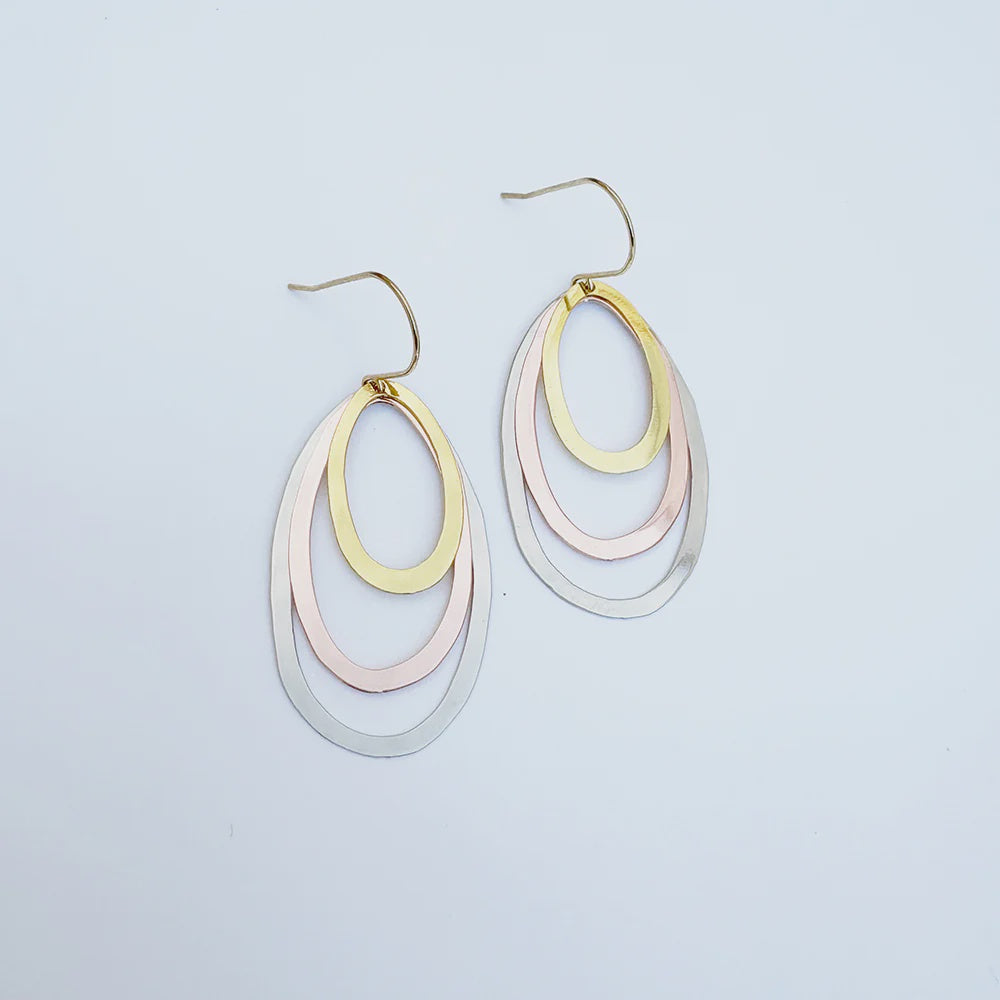 Sleek, sculptural, and seriously versatile, the midi Tri-Shape Oval Earrings by DENZ bring a modern twist to the everyday hoop. Featuring three hand-drawn ovals in varied sizes and finishes - Gold, Rose Gold, and Silver - this mixed-metal masterpiece is the perfect go-to for those who like their jewellery with a bit of edge. Made from super thin recycled stainless steel, they’re super lightweight, hypoallergenic, and perfect for all-day (or all-night) wear.