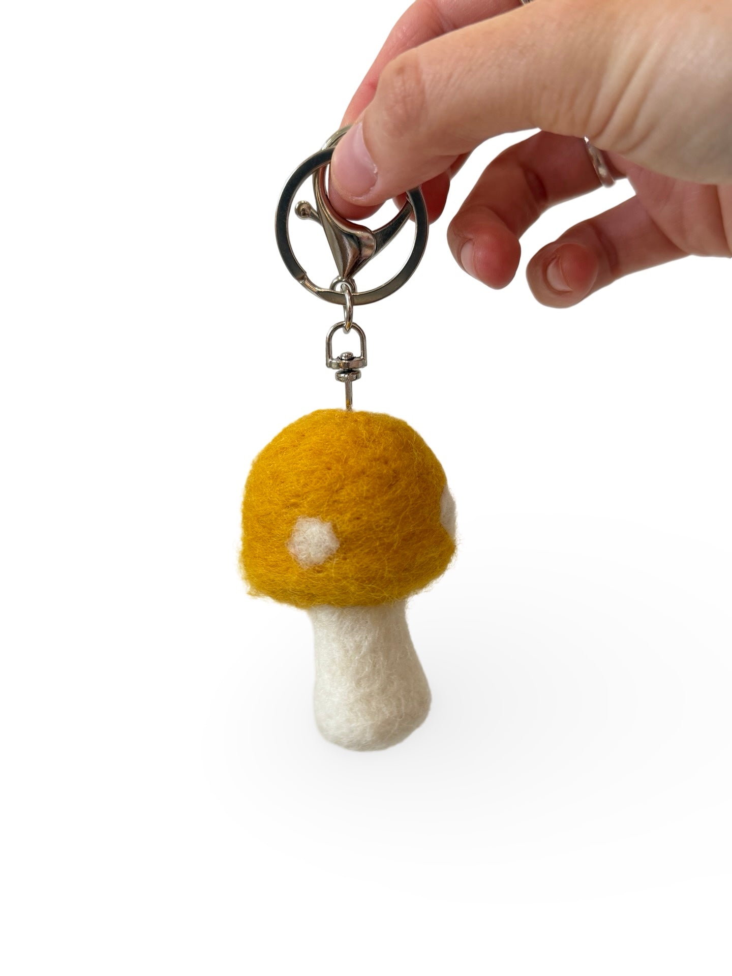 Mushroom Felted Wool Keyring/Clip - Mustard