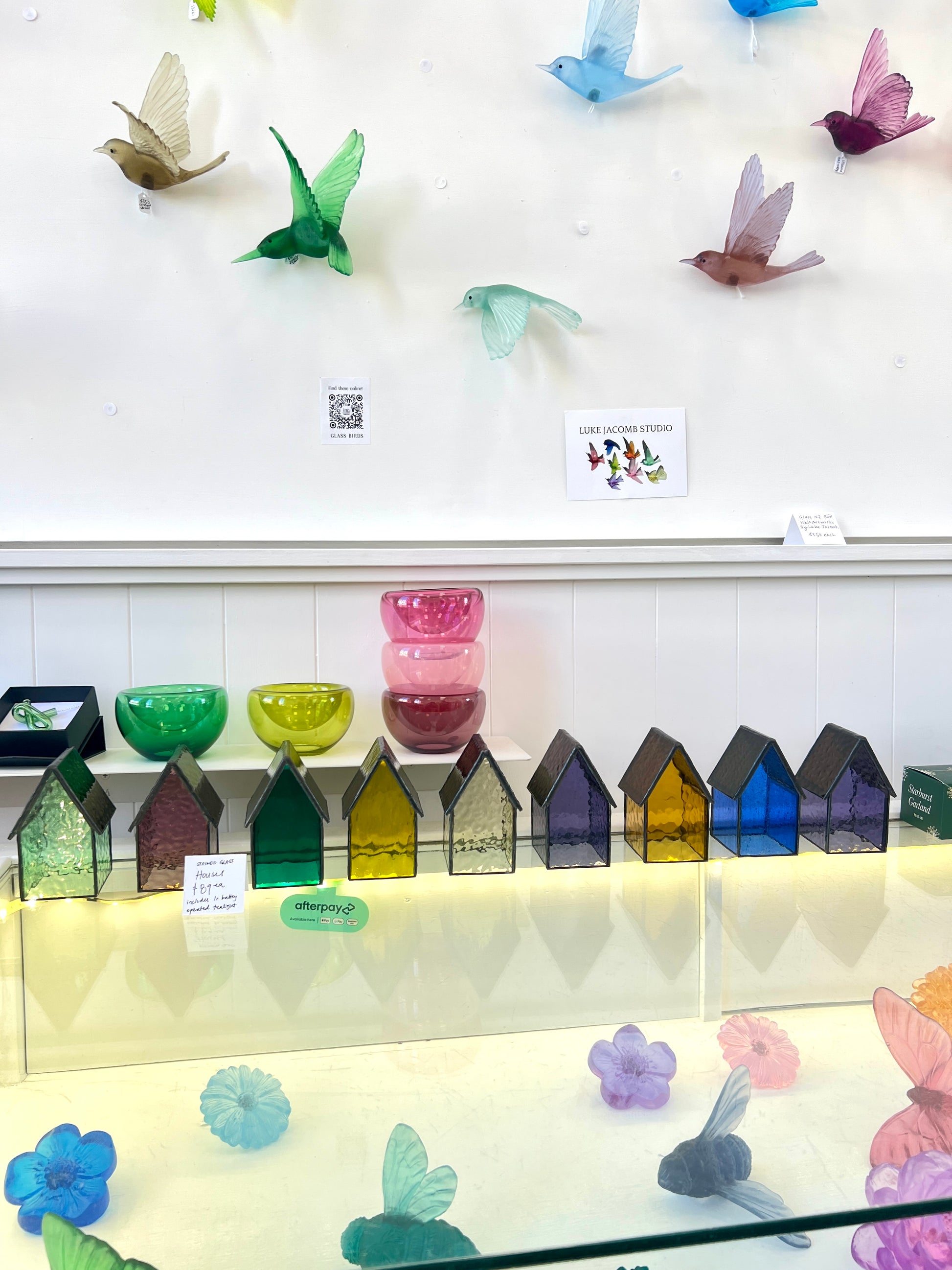 These mini glass structures beautifully capture the essence of a charming village. Each piece showcases a perfect blend of vivid colour, light and shadow.