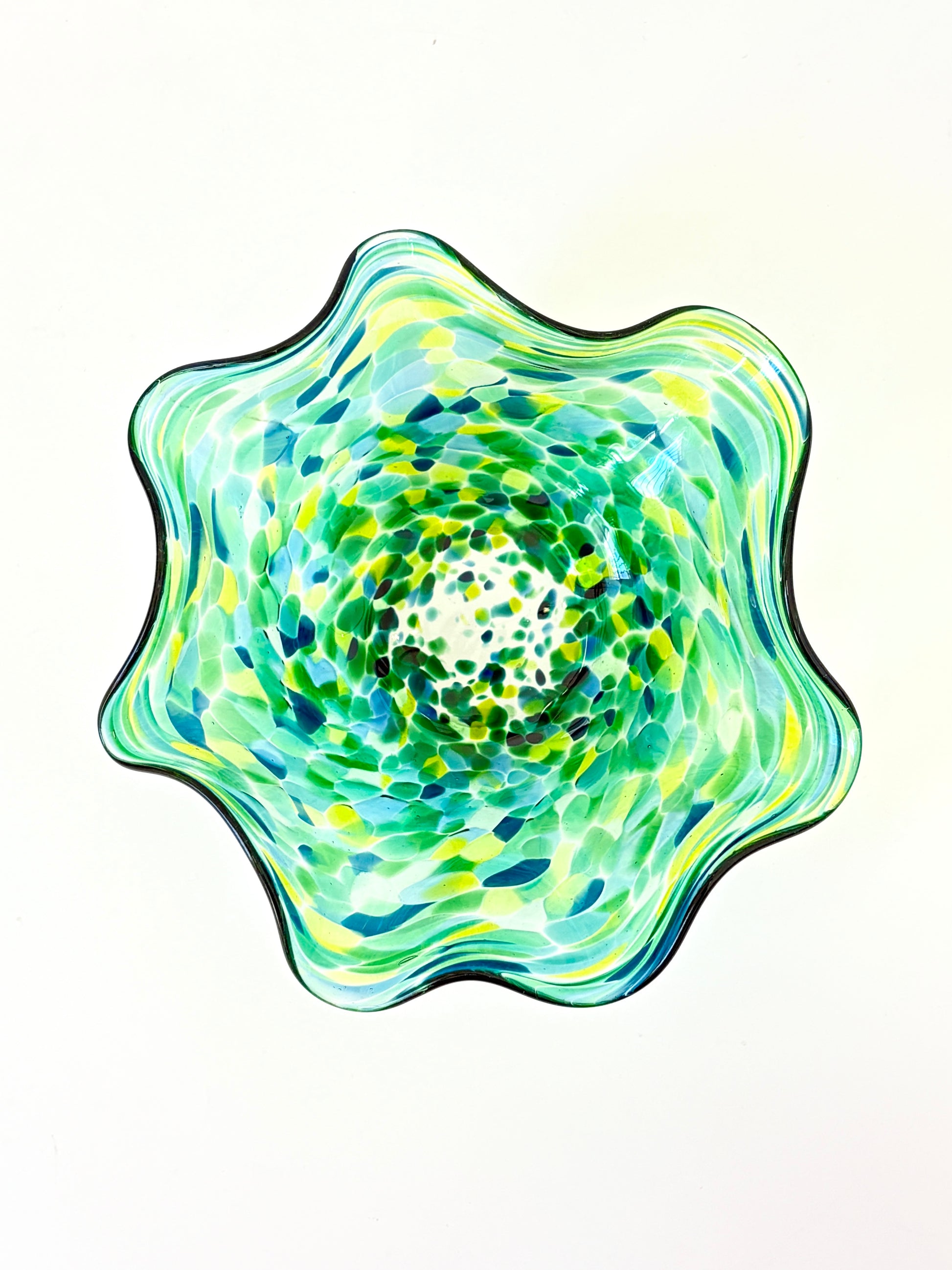 Wavy Handblown Glass Lolly Bowl - Green