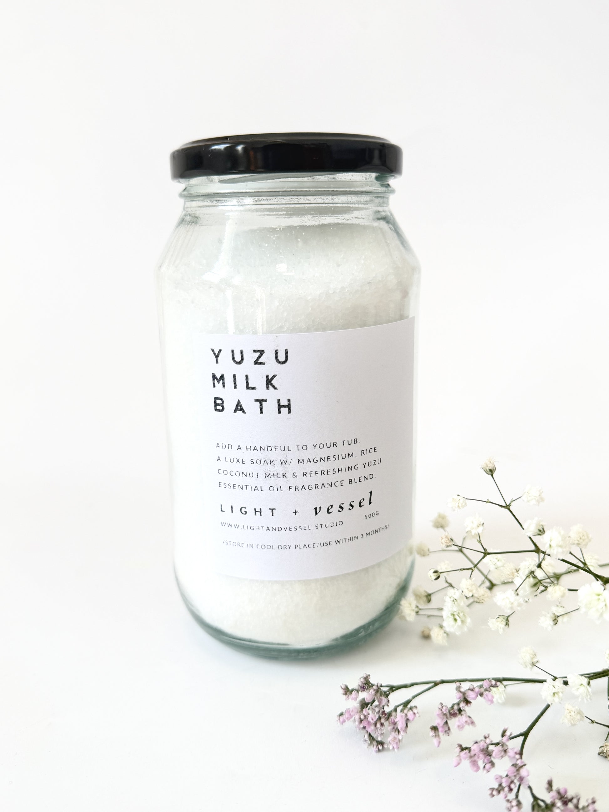 The bright optimistic fragrance of Yuzu is paired with Organic coconut milk, rice powder, magnesium and rock salt, to envelope your skin and awaken your joy.